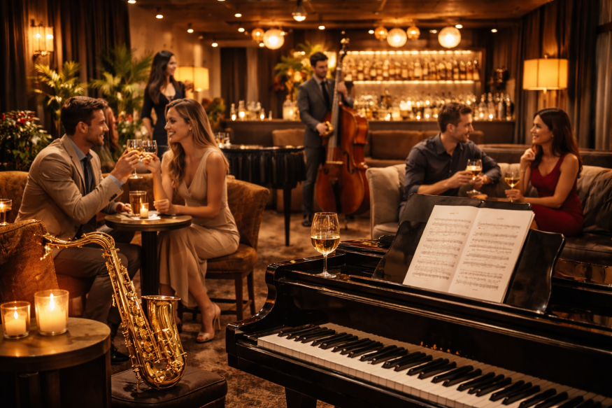 Selectia muzicala combina elemente de pop si jazz modern, cu influente smooth, instrumentatii calde si linii melodice fluide. Muzica este discreta, sofisticata si echilibrata, creand o ambianta placuta fara a deveni intruziva sau obositoare pentru clienti sau personal.